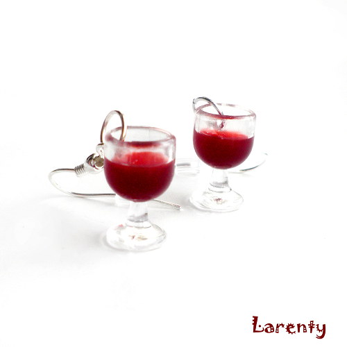 Naušničky představující sklenice plné červeného vínka jsou lehké na uchu. doplněny o lahvinku červeného vína, které je zavěšeno na šifonové stuze a 2 voskovaných šňůrách vínové barvy, délka 45 cm + 5 cm řetízek.